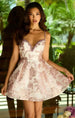 Add a touch of whimsy to your next event with the Ava Presley 26357, a romantic A-line mini dress that feels effortlessly magical. Made from light embroidered tulle, this dreamy design features subtle glitter accents and delicate floral details that shimmer softly in the light. The sweetheart neckline and dainty spaghetti straps give the bodice a graceful shape, while the open back adds just the right hint of modern charm. Whether you’re headed to homecoming, a garden celebration, or an evening under the stars, this dress brings just the right mix of charm and sparkle.